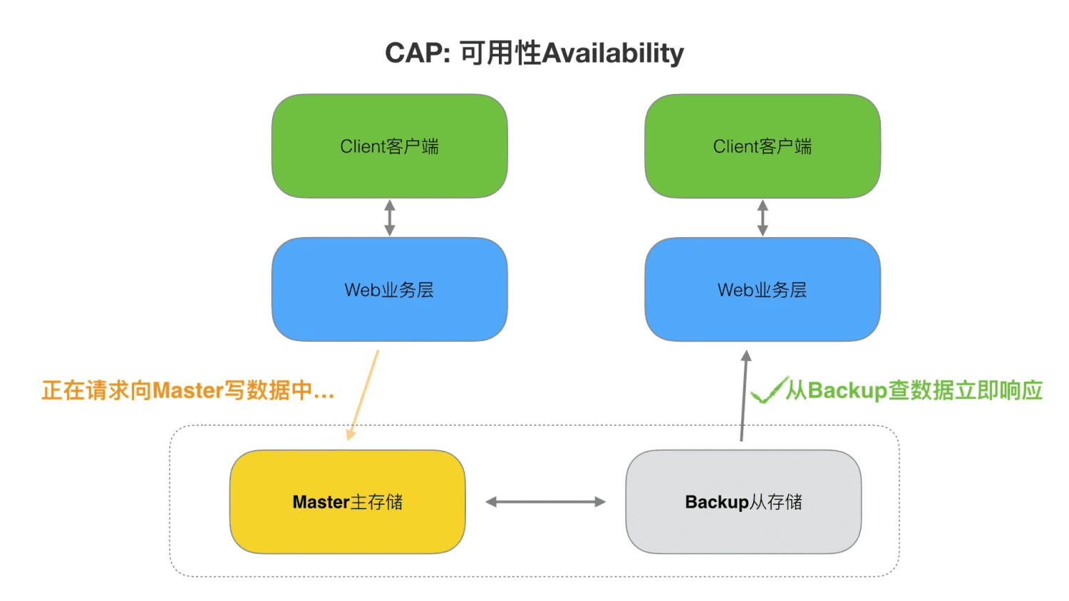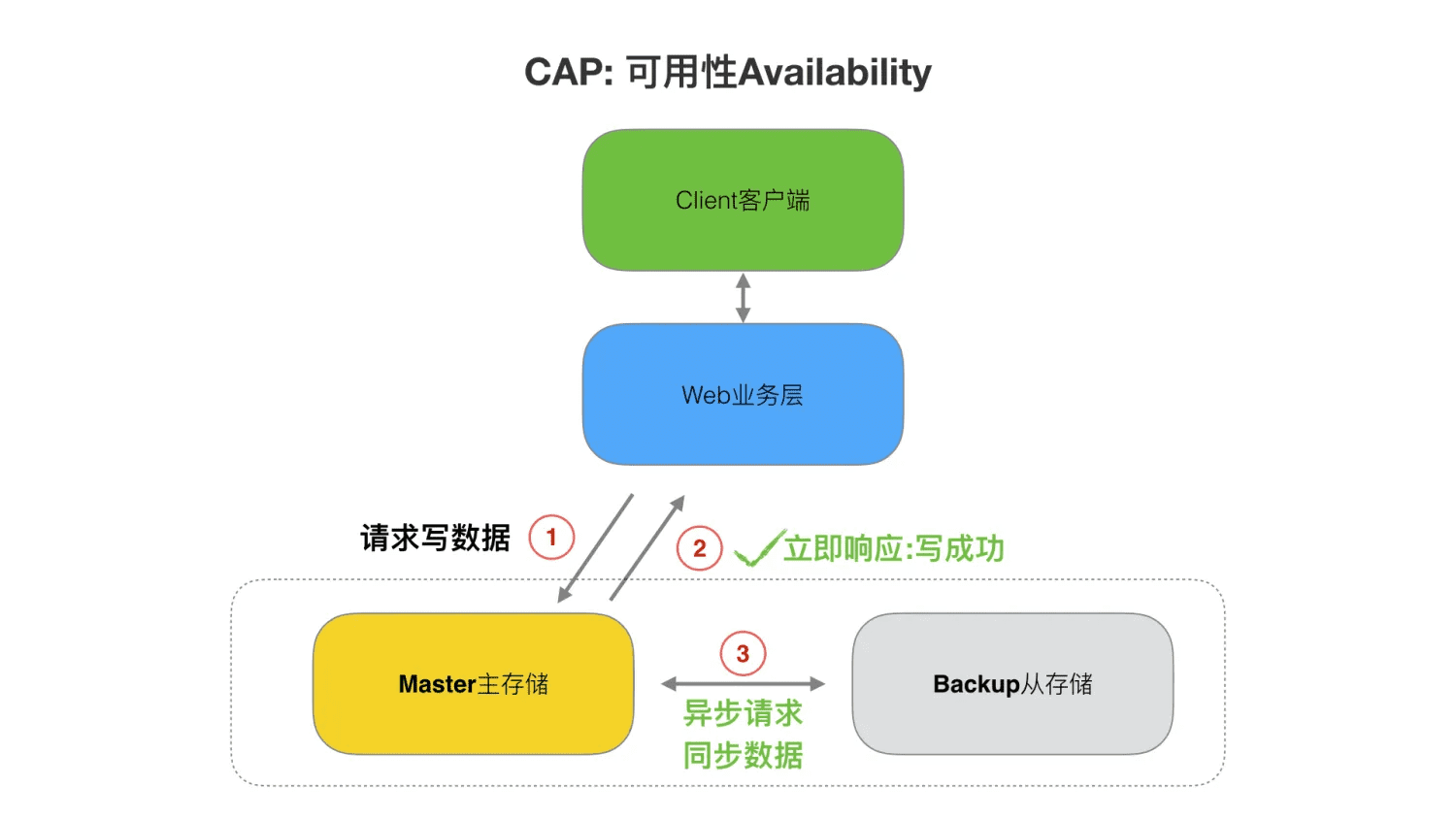 可用性的目标是,当主存储被更新是,如果从存储收到数据查询请求,应当立即能够响应数据查询结果,不允许出现响应超时或响应错误。