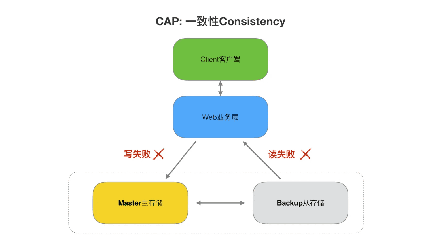 一致性的目标是将数据写入主存储,然后从从存储读取也成功,如果写入失败则从从存储读取也失败。