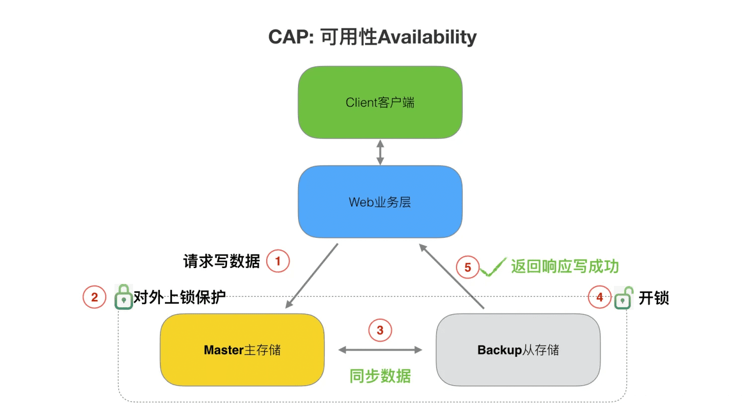 为了实现可用性,不可以将从存储中的资源锁定,即使数据还没有完成同步,从存储也要返回查询的数据而非返货错误或超时,即使它是旧数据。