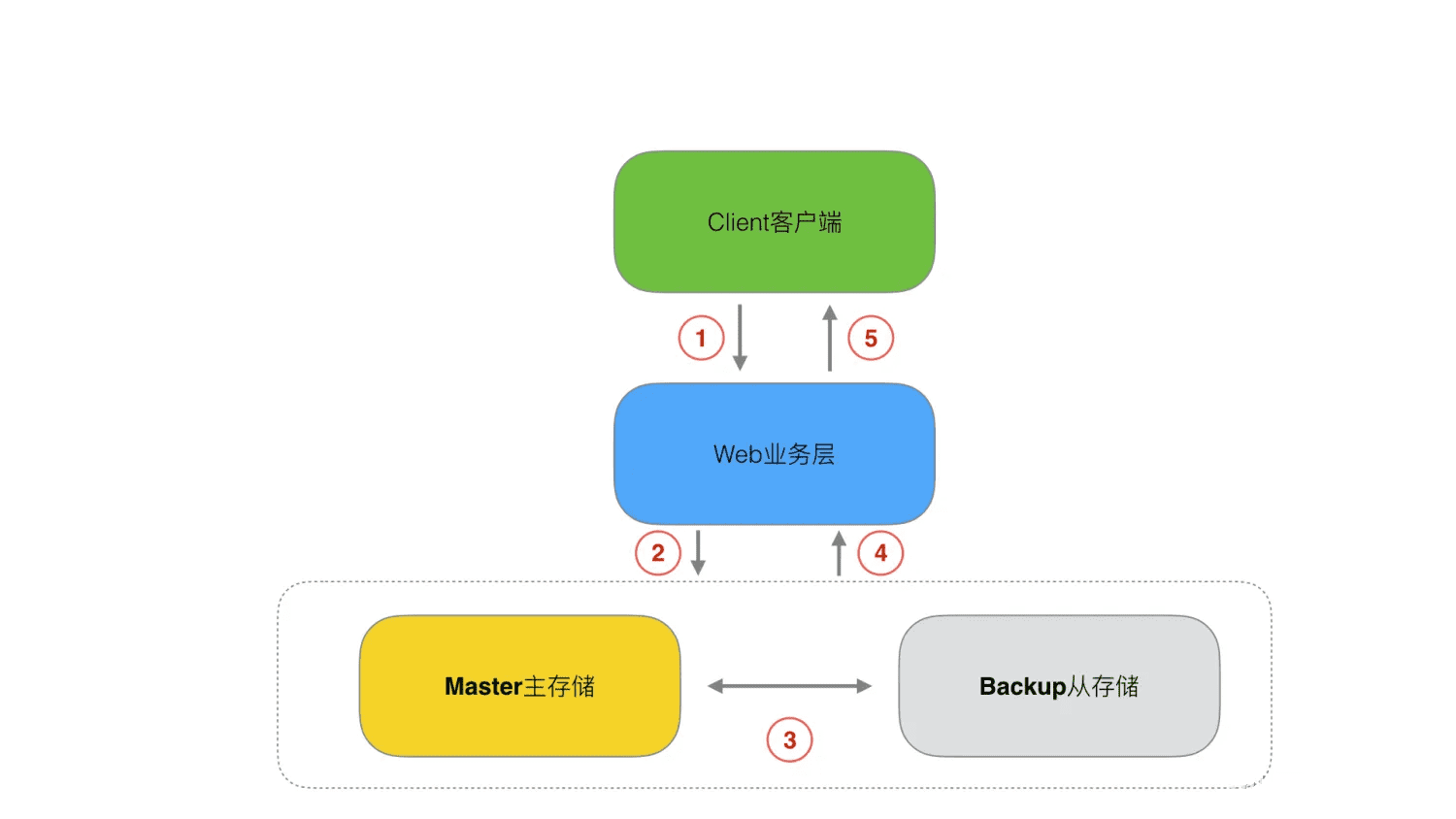 为了实现一致性,在写入主存储后,需要锁定数据库以向从存储同步数据,待同步完成后再释放锁,避免写入新数据后读取到旧的数据。