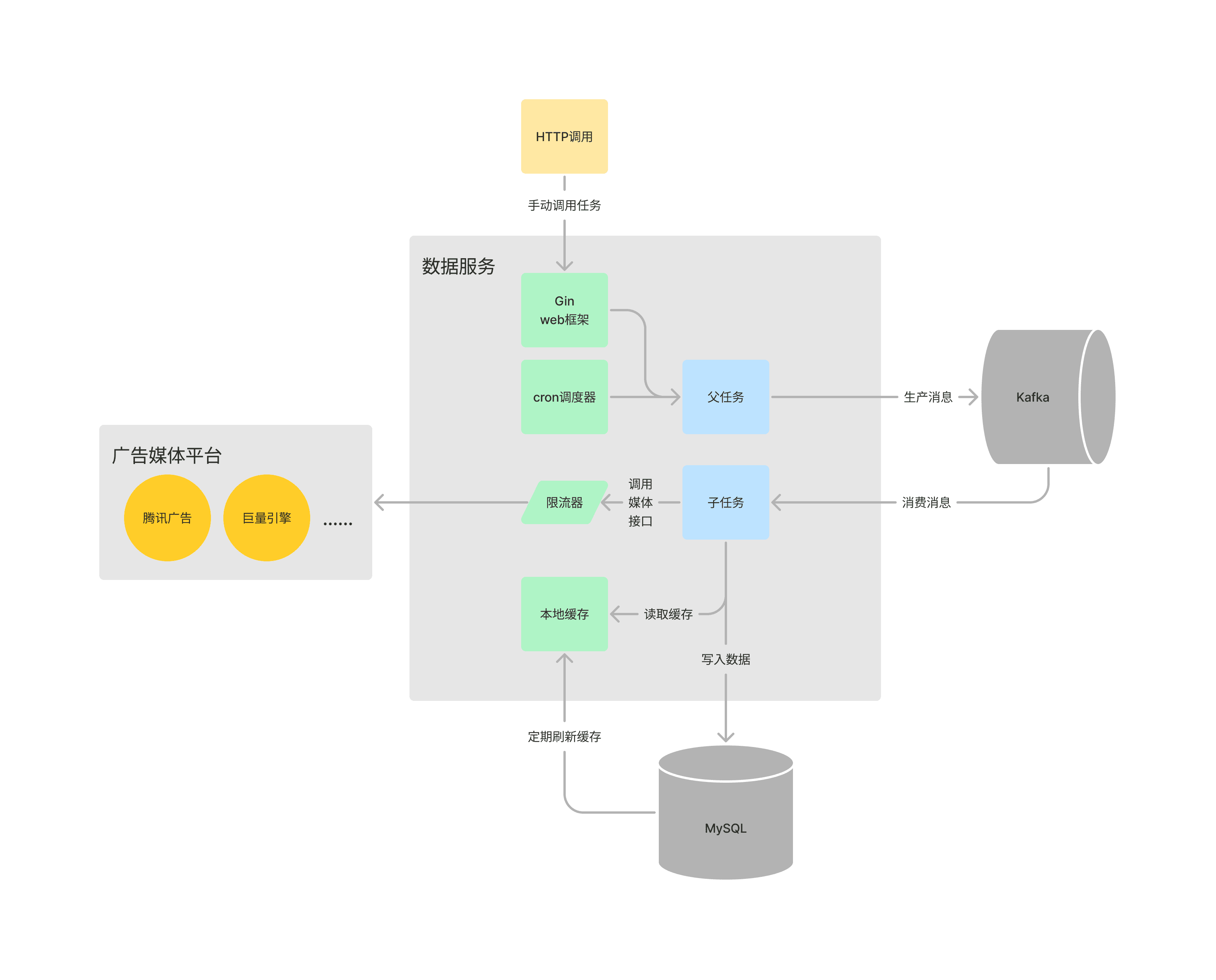 在广告媒体平台对接系统中,MKTAPI 数据服务作为广告媒体平台接入的基础,将所有的数据拉取和同步工作以定时任务的形式,根据配置的时间和频率每天定时执行,为投放平台提供数据基础。