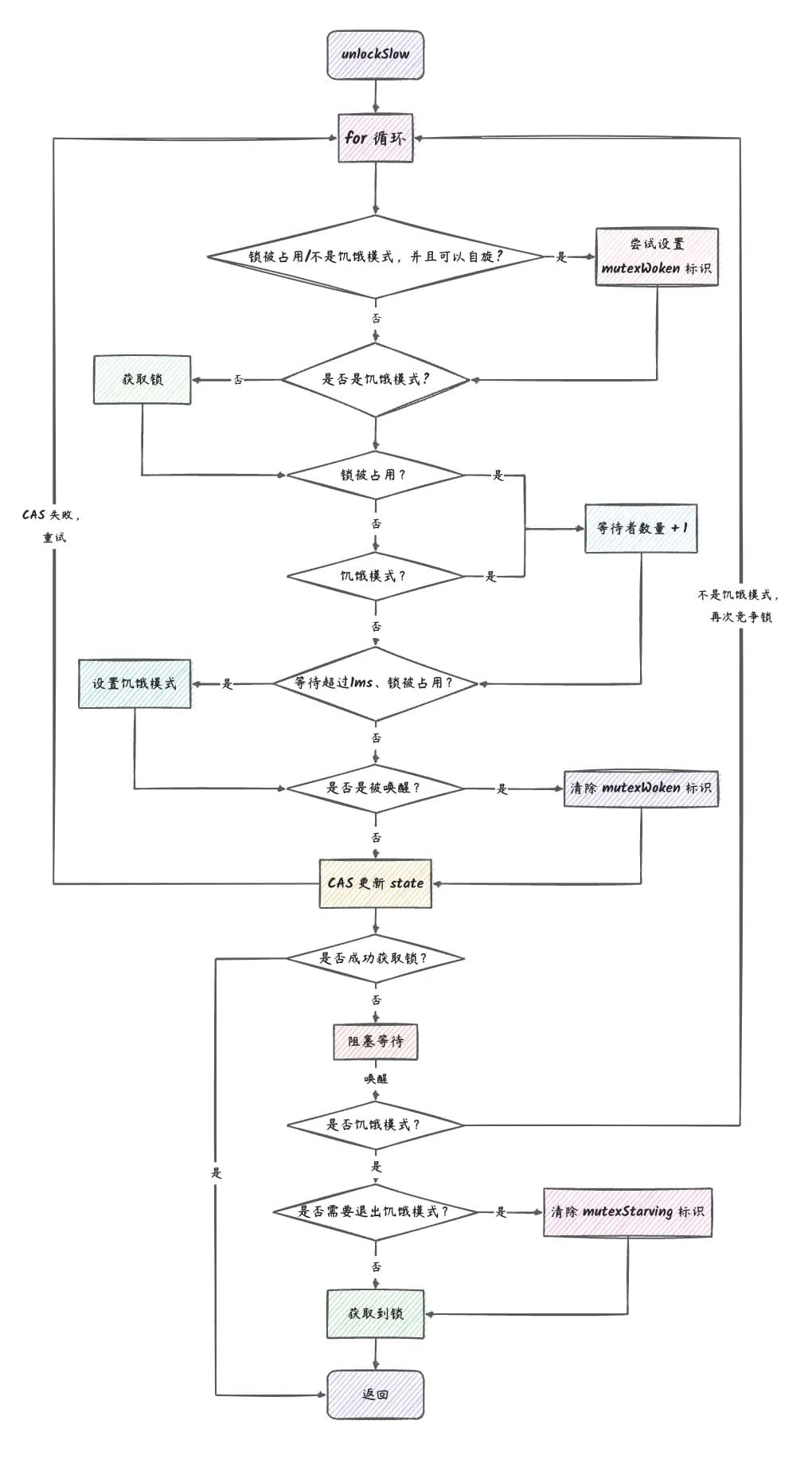 // 如果当前协程不是饥饿模式,就将锁转为正常模式