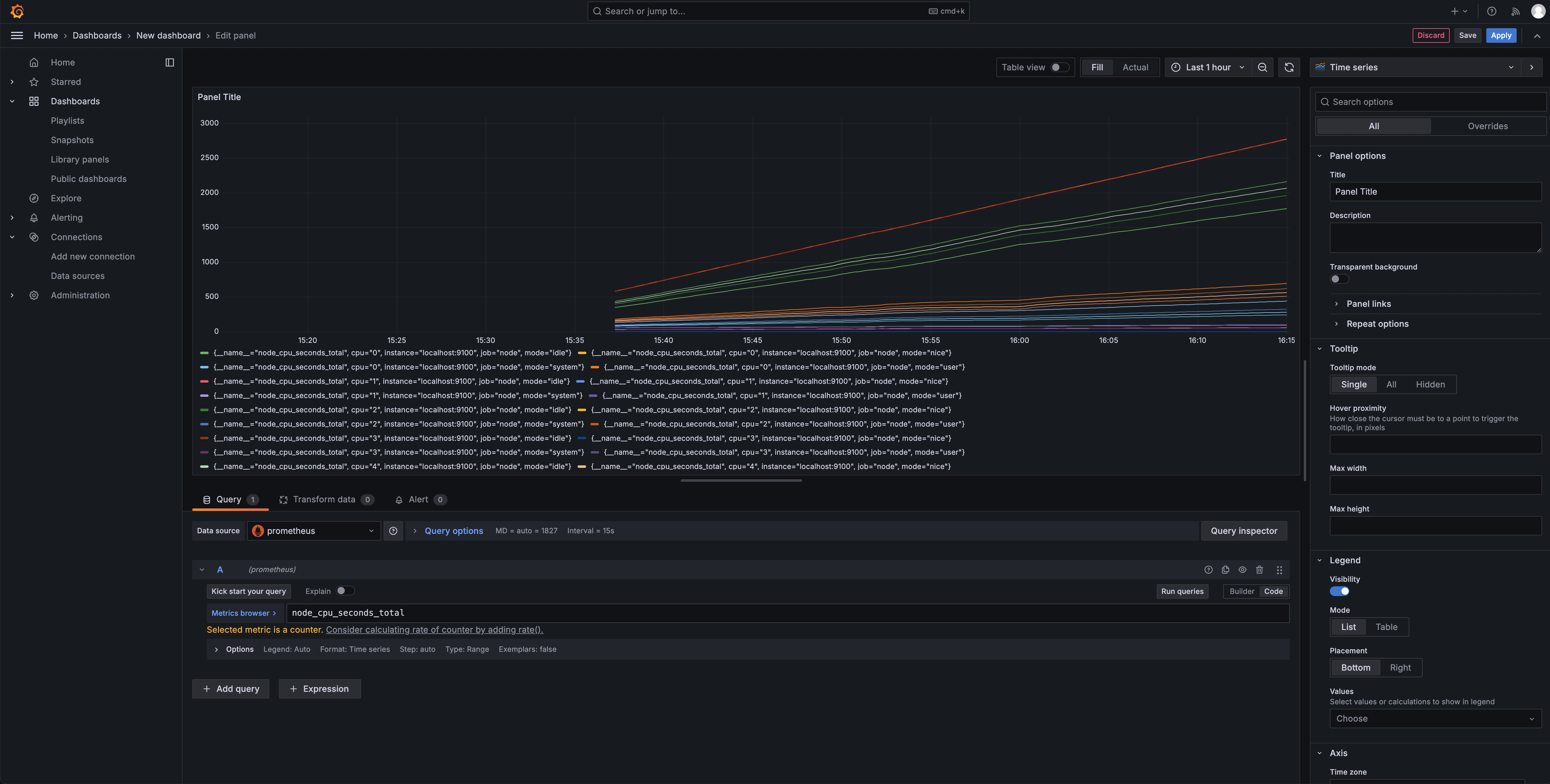 Gauge(仪表盘)表示可以任意上升或下降的单个数值。它用于表示内存使用情况、并发请求数等可能增加或减少的测量值。