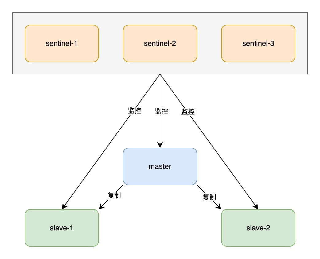 当主节点出现故障时,Redis Sentinel 能自动完成故障发现和故障转移,并通知客户端,实现高可用。